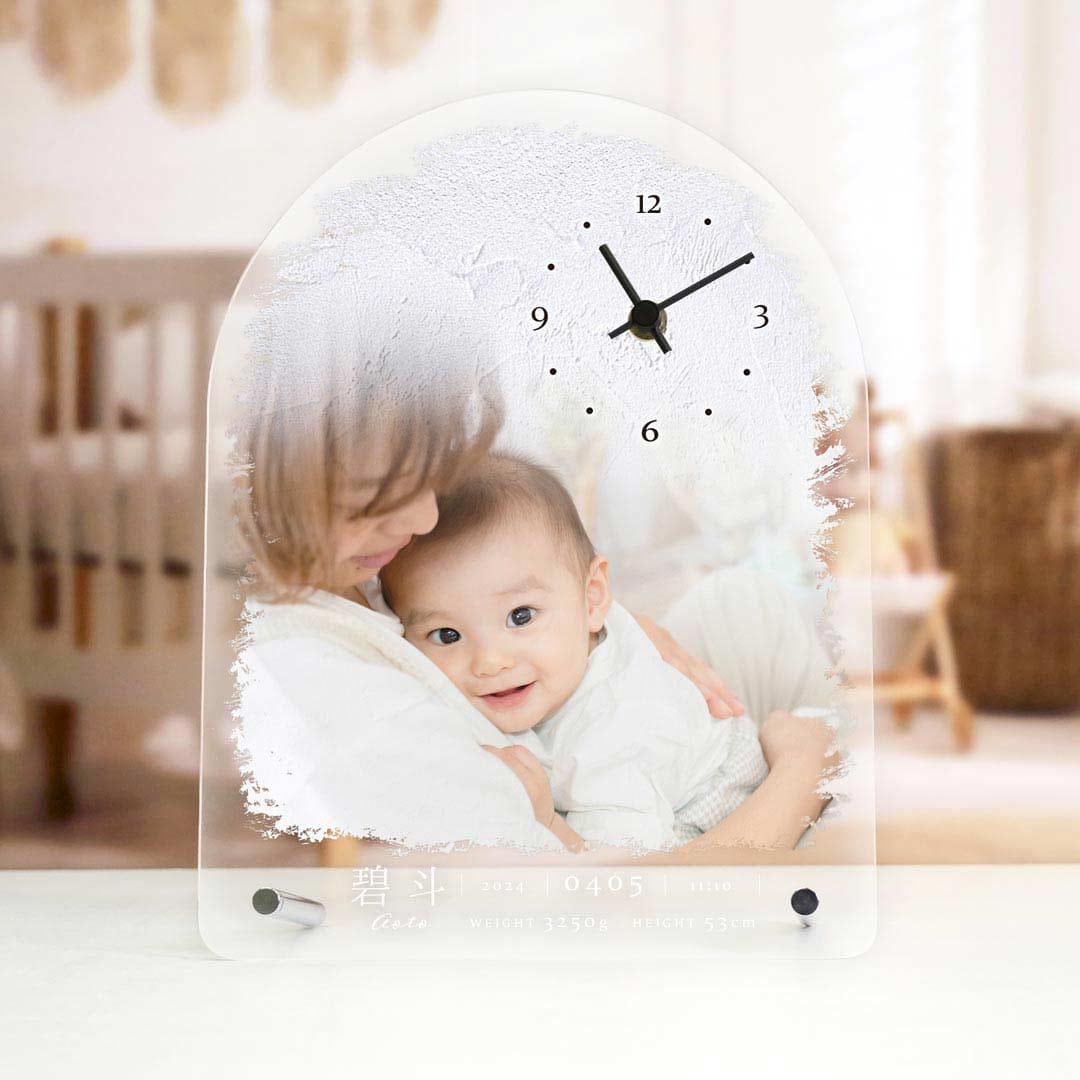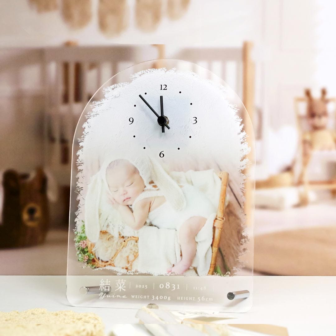 《出産祝い記念内祝い》写真入時計付き命名書「アクリルベビーフォトクロック」