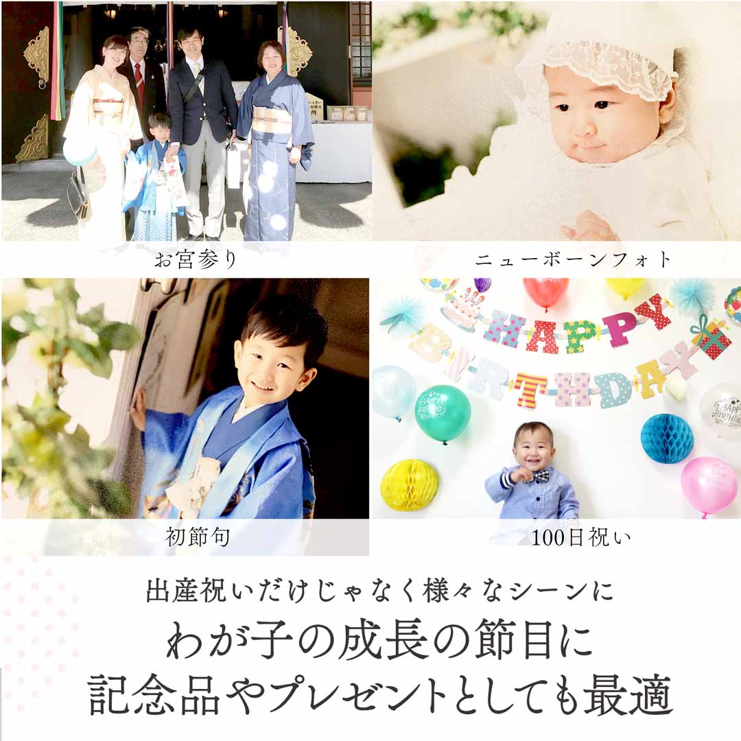 白い文字&写真の下に配置するので、少しさりげない感じで目立ちすぎないので、現代のおしゃれなお部屋に飾っても自然に馴染み、「命名書」というよりはインテリアとしてお子様の写真をお部屋に取り入れられます。