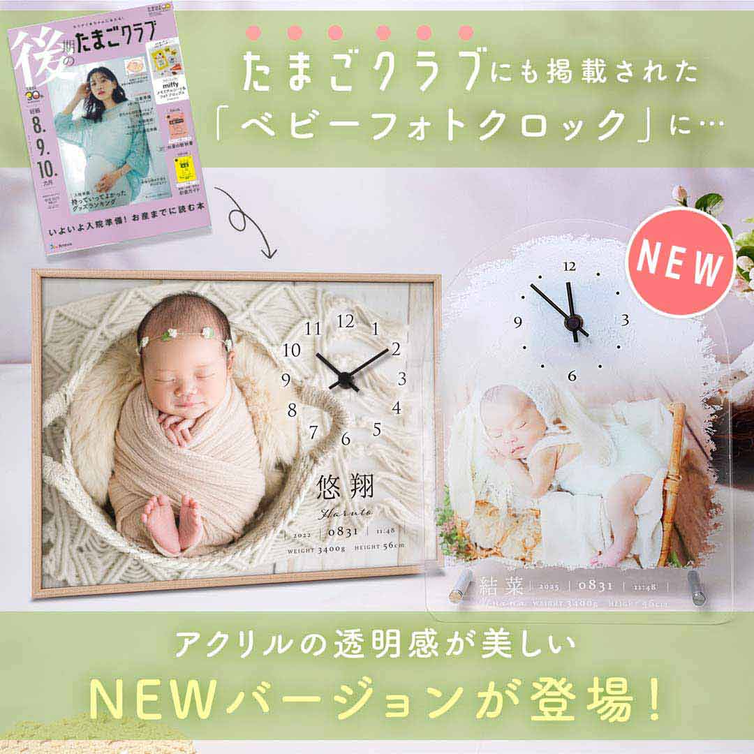 ぜひ「ベビーフォトクロック」「アクリルベビーフォトクロック」にご注目ください✨