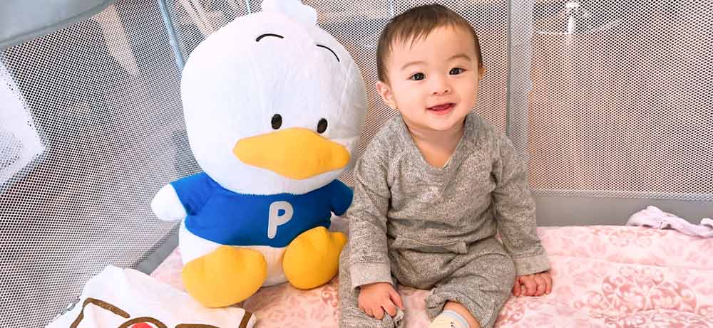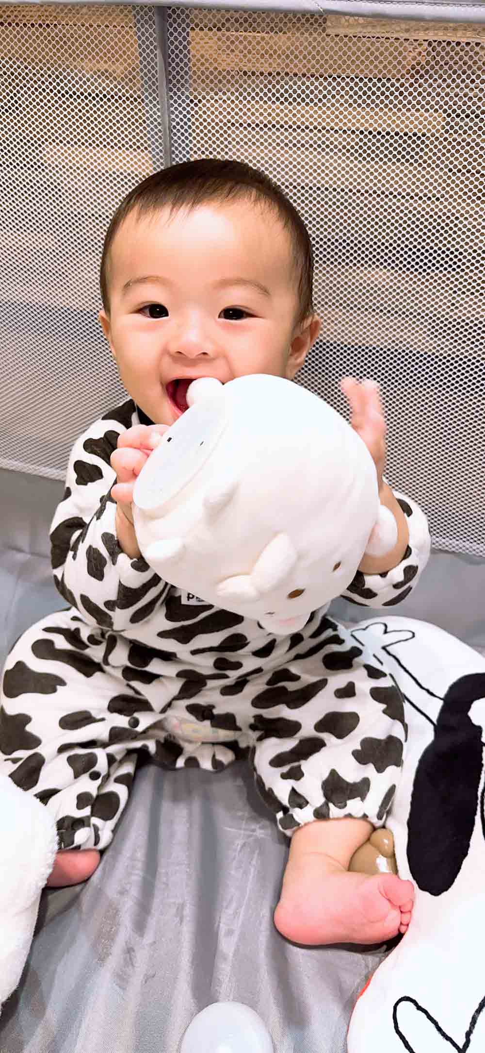 大好きなぬいぐるみに囲まれてご機嫌のベビちゃん😊