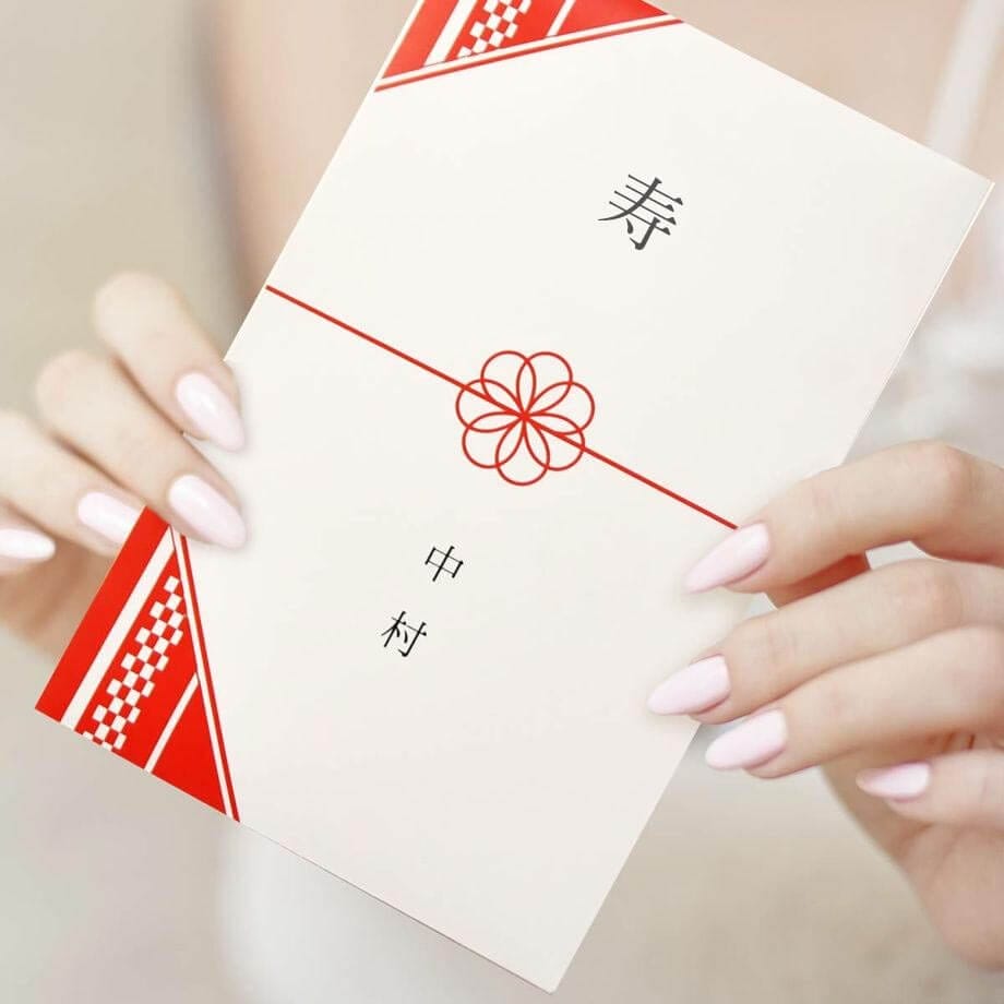 表書きは「御祝」などから選べるほか、「寿」などお好きな文言にカスタマイズすることも可能です。