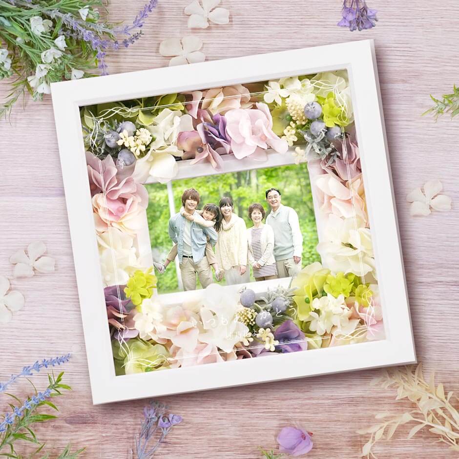 こちらは華やかな黄色いお花をアレンジしたフォトフレーム。お写真が2枚入るので家族の思い出のお写真にメッセージを添えて贈ってみてはいかがでしょうか。渡した瞬間から感動してもらえ、見るたびに心が明るくなるような贈り物です。