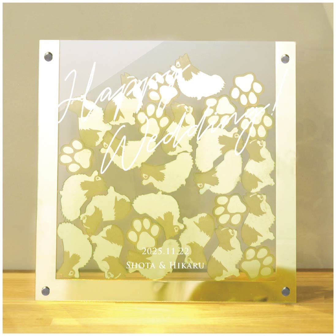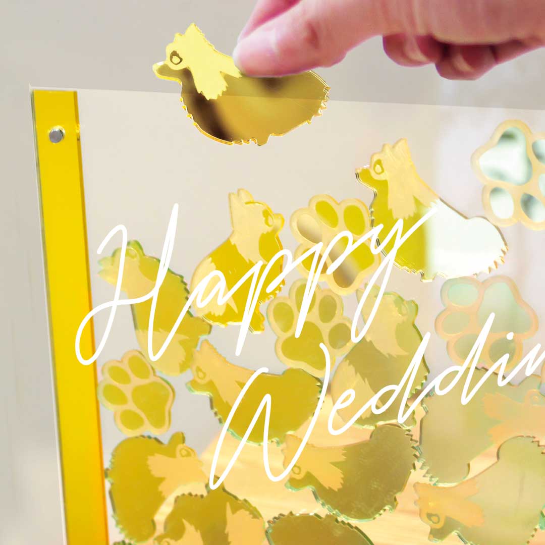 アクリルゴールドミラーなので キラキラとして高級感のあるワンちゃんに✨