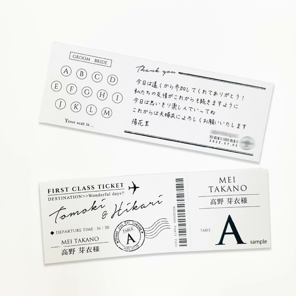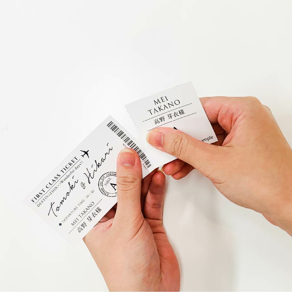 セットでご用意されたのが飛行機の旅券チケット風エスコートカード