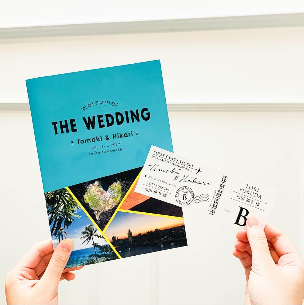 見た事あるかも!?旅のガイドブック風にアレンジしたプロフィールブックと、旅券チケット風のエスコートカードをご紹介したいと思います。