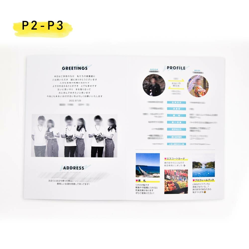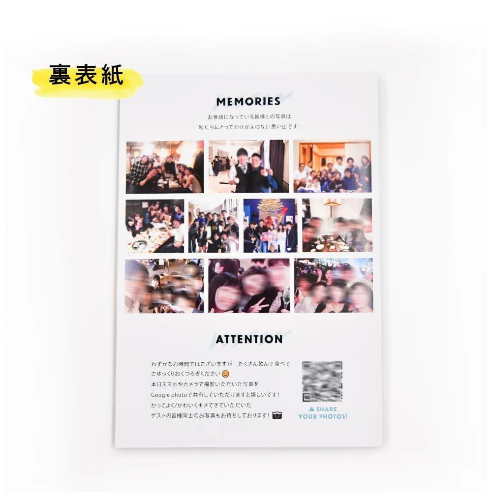 席次表やメニュー表などを省き、シンプルにプロフィールに特化した4ページに!