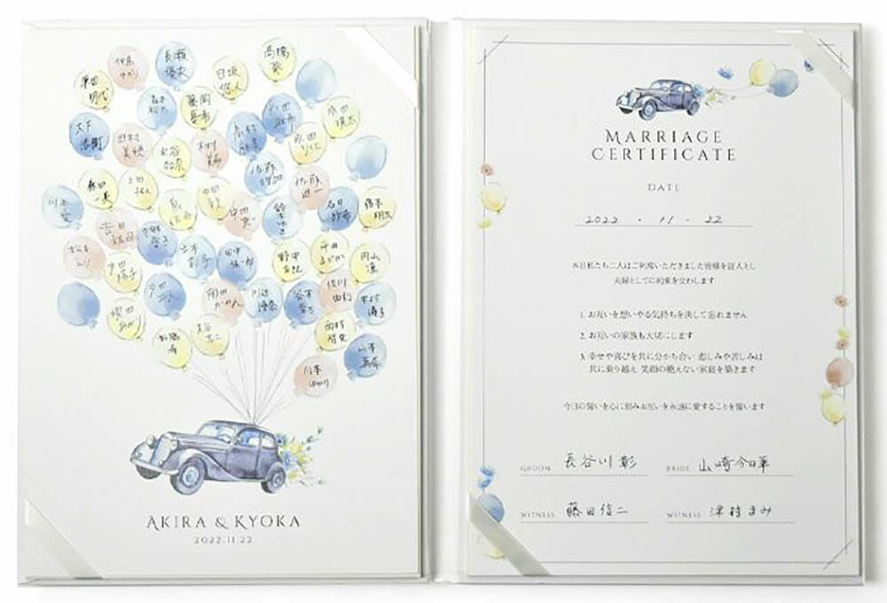 愛車入りで世界にひとつだけの結婚証明書に -