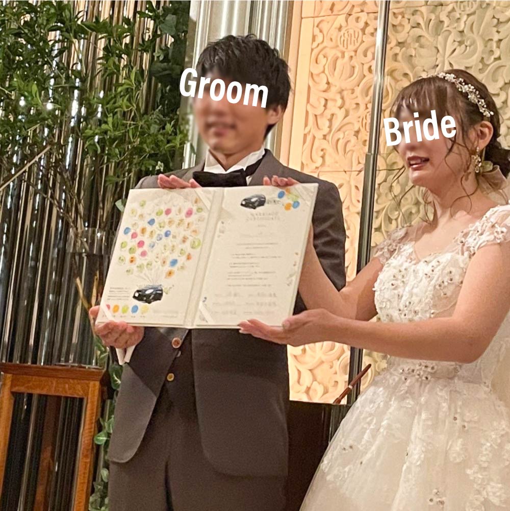 完成した結婚証明書のお披露目シーンです♪やはり完成品を見るのは感動ですよね~