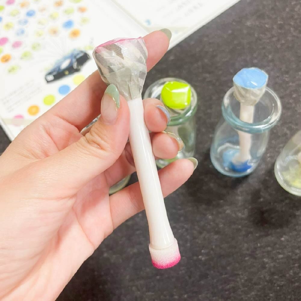 スポンジはダイソーのステンシル用スポンジ(リバーシブルタイプ、2本)の細い方を使っていました。
