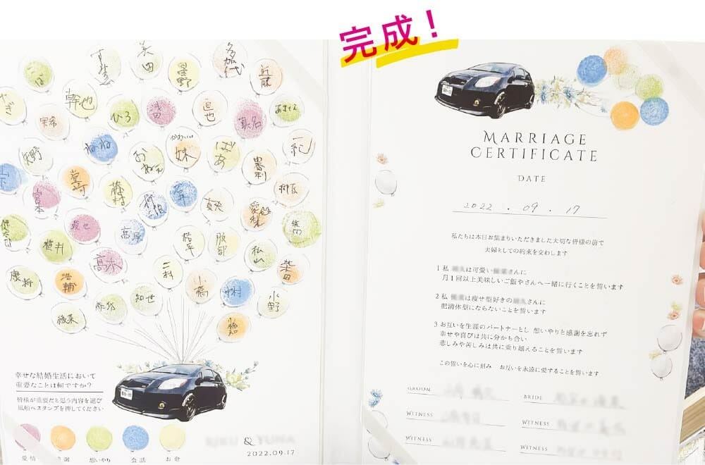 愛車入りで特別感を♪スタンプ演出でゲストも楽しい結婚証明書
