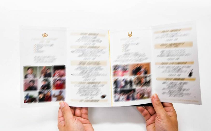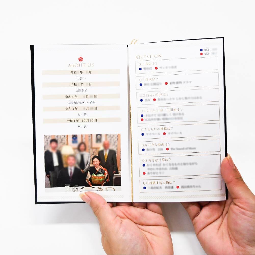 ちなみに以前は席次表もプロフィールも入るこちらのオールインワン型をオススメしておりましたが、家族挙式の場合は、席次表が不要であったり、席次表が「1ページ」に収まる場合も多いので、もっとこだわりを詰め込んだアイテムにしたい!とお考えの方は、ぜひ参考にしてみてください(*´ω`)