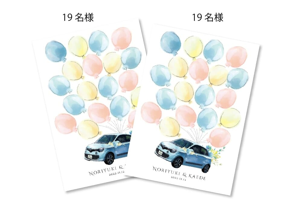 ちなみに既存商品の結婚証明書の場合、風船は1シートにつき50個×2で最大100名様分の署名が可能です。