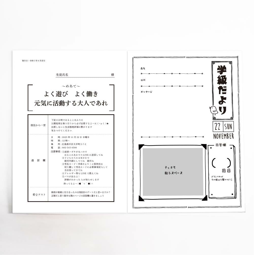 学級だより風の芳名カード付き