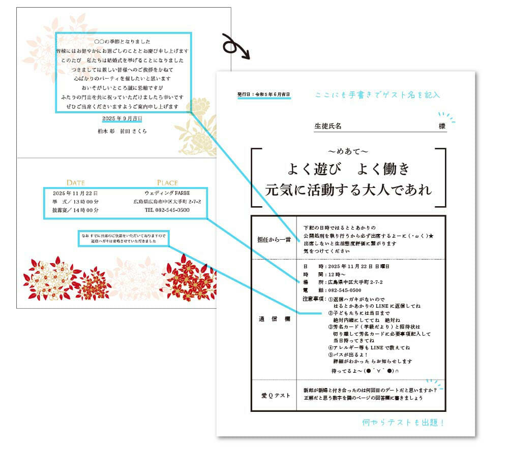 【教員さん必見】通知表が結婚式の招待状に!?おもしろアイデアをご紹介!