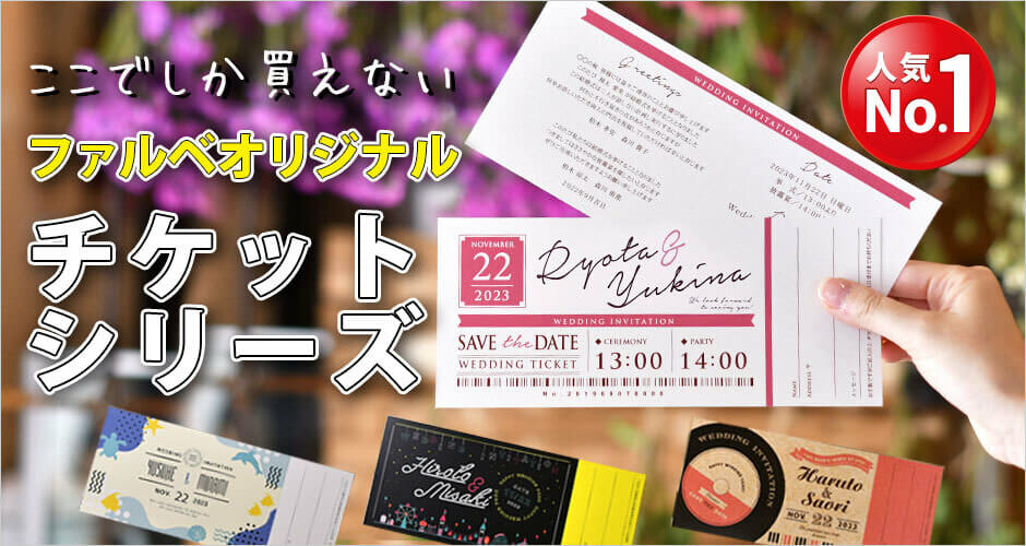 ちなみにファルベでもピリッとちぎる芳名カード付きの招待状は大人気!
