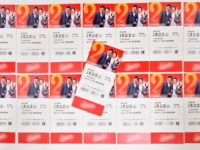 ミシン目の左側と右側でカラーを分けたデザイン。フォントも変えているのがポイントです。