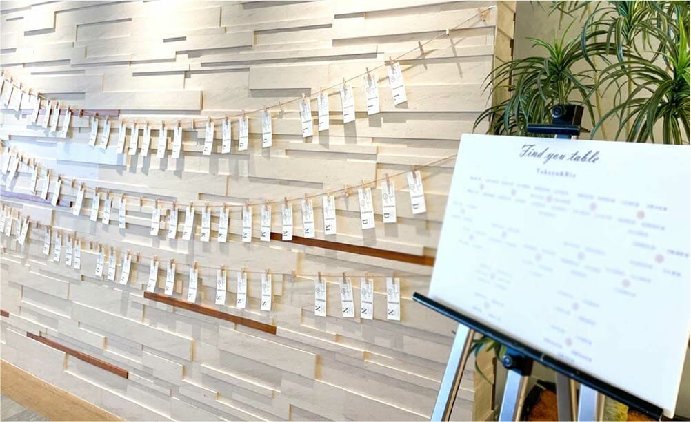 席次表をエスコートカードに変えてワクワクの演出を楽しみたい!そんなあなたはエスコートカード+席札(席札は不要の場合もあります)