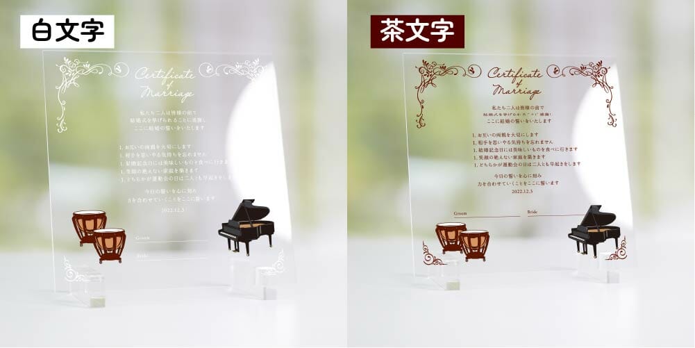 ピアノとティンパニ入りおアクリル結婚証明書!~文字が見えない!?をなるほど解決!~