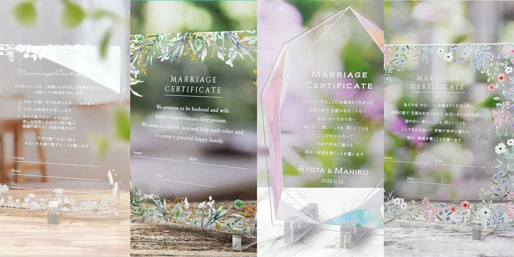 カラフルかわいい!アクリル結婚証明書のオリジナル実例!