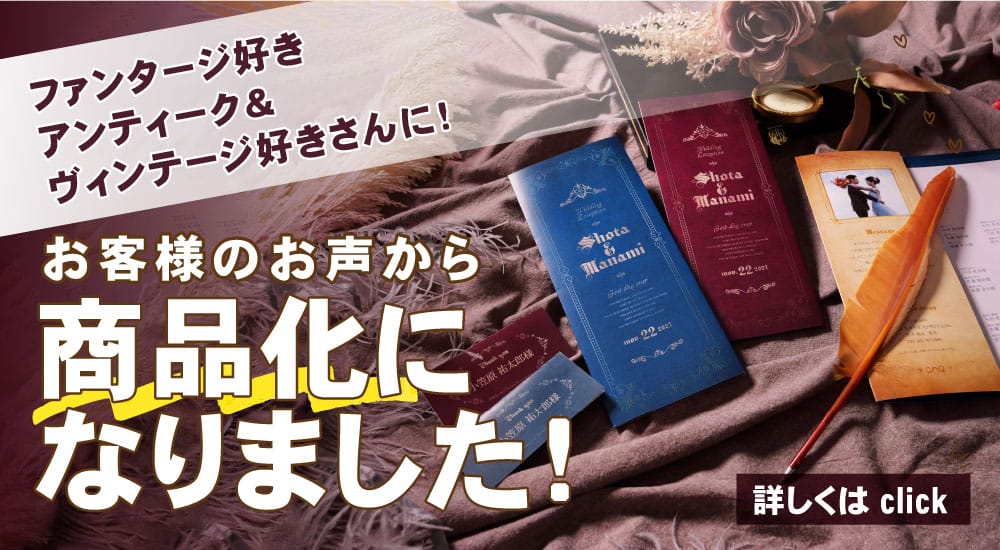 封筒に合わせて、招待状のサイズを自由にカスタマイズできますので、お気軽にご相談くださいね!