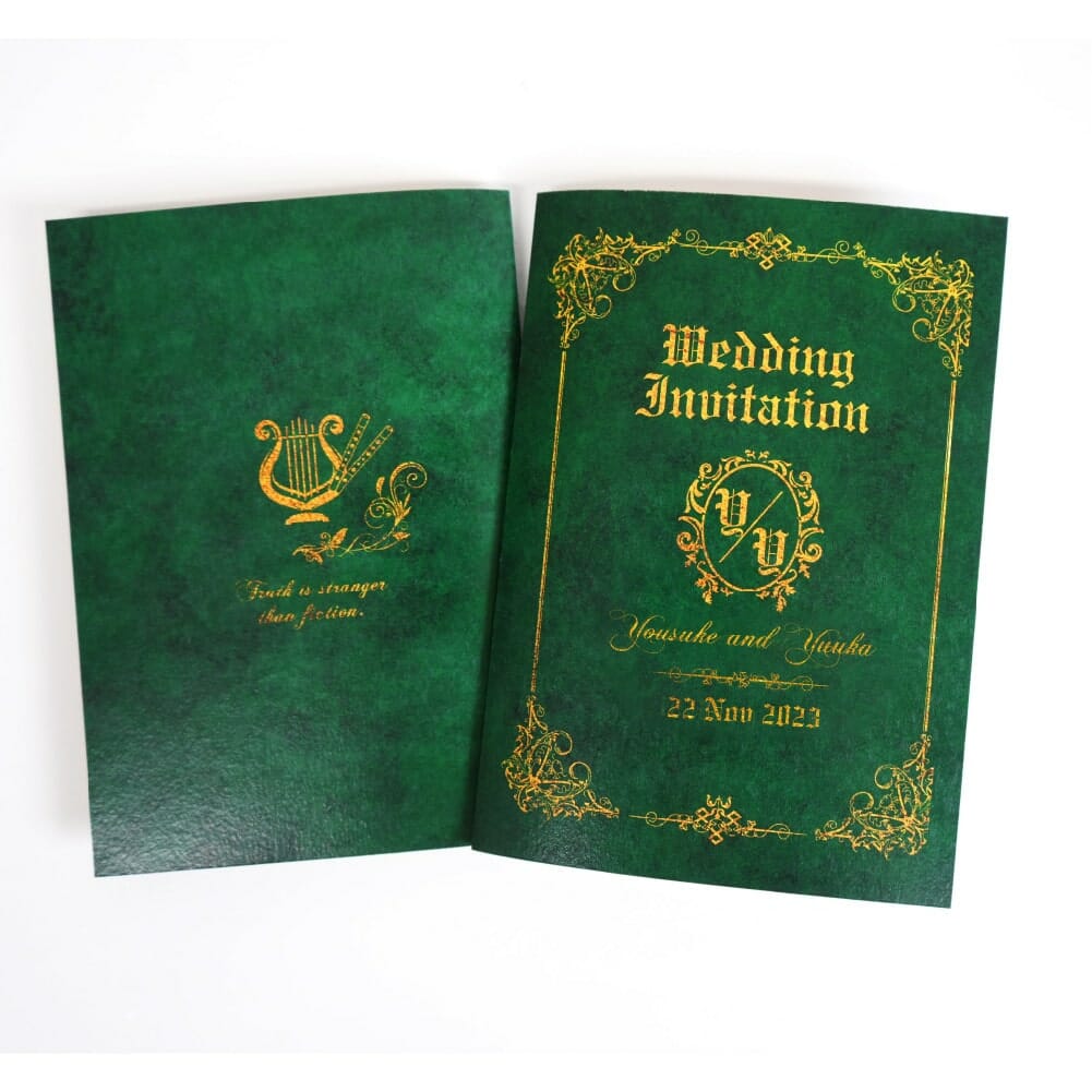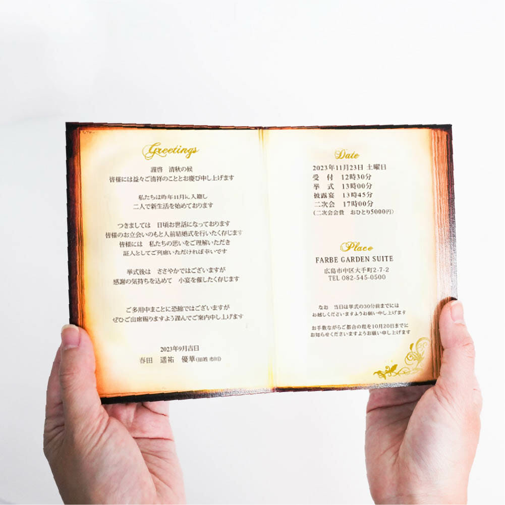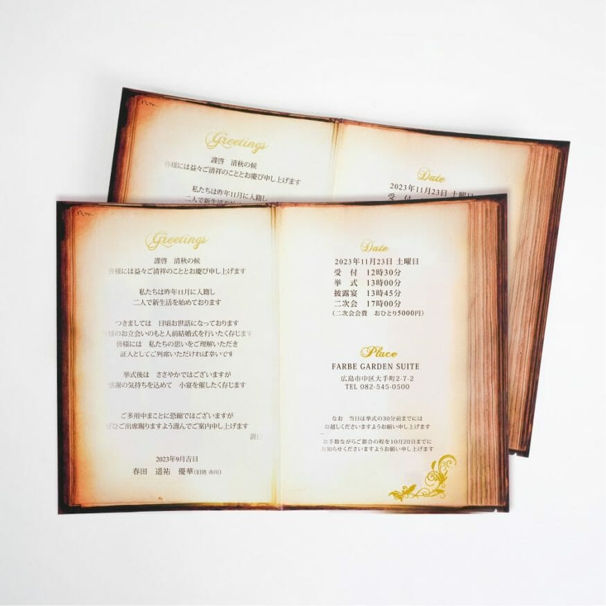 海外のアンティーク本をイメージした二つ折りの招待状 -