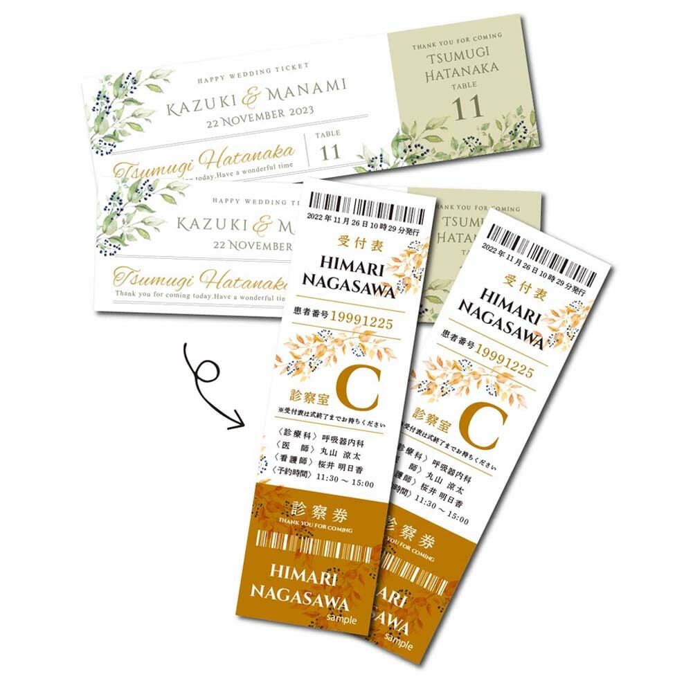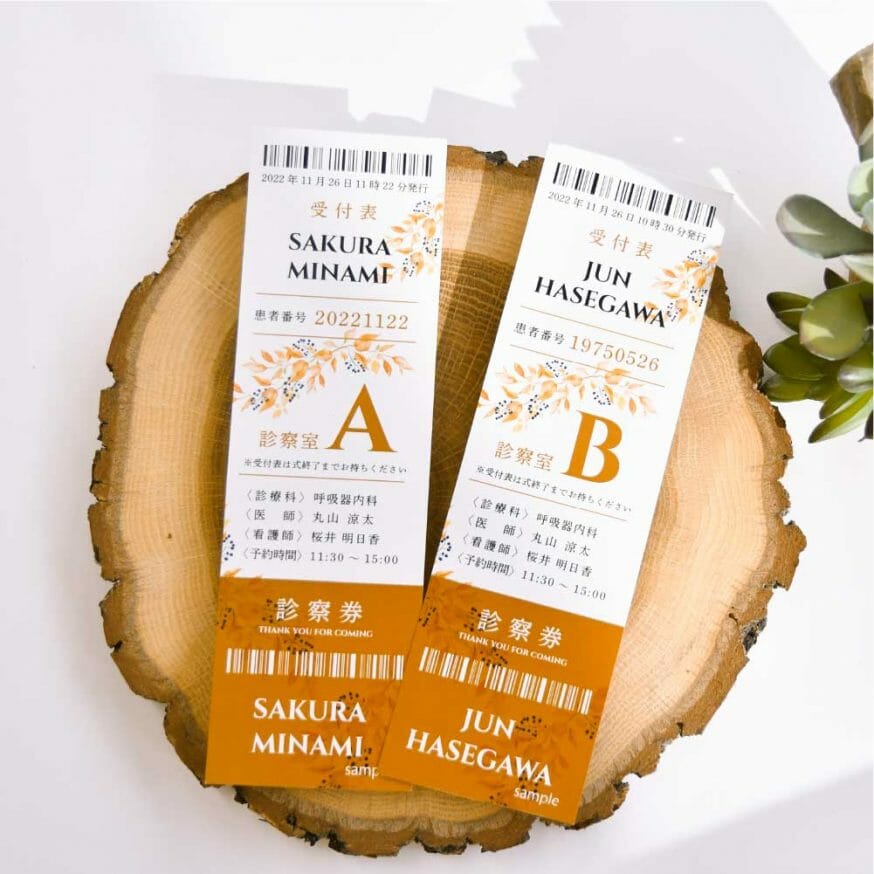 【医者・看護士さん】の結婚式!エスコートカードが遊びゴコロ満載!~縦型の診察券風アレンジ~