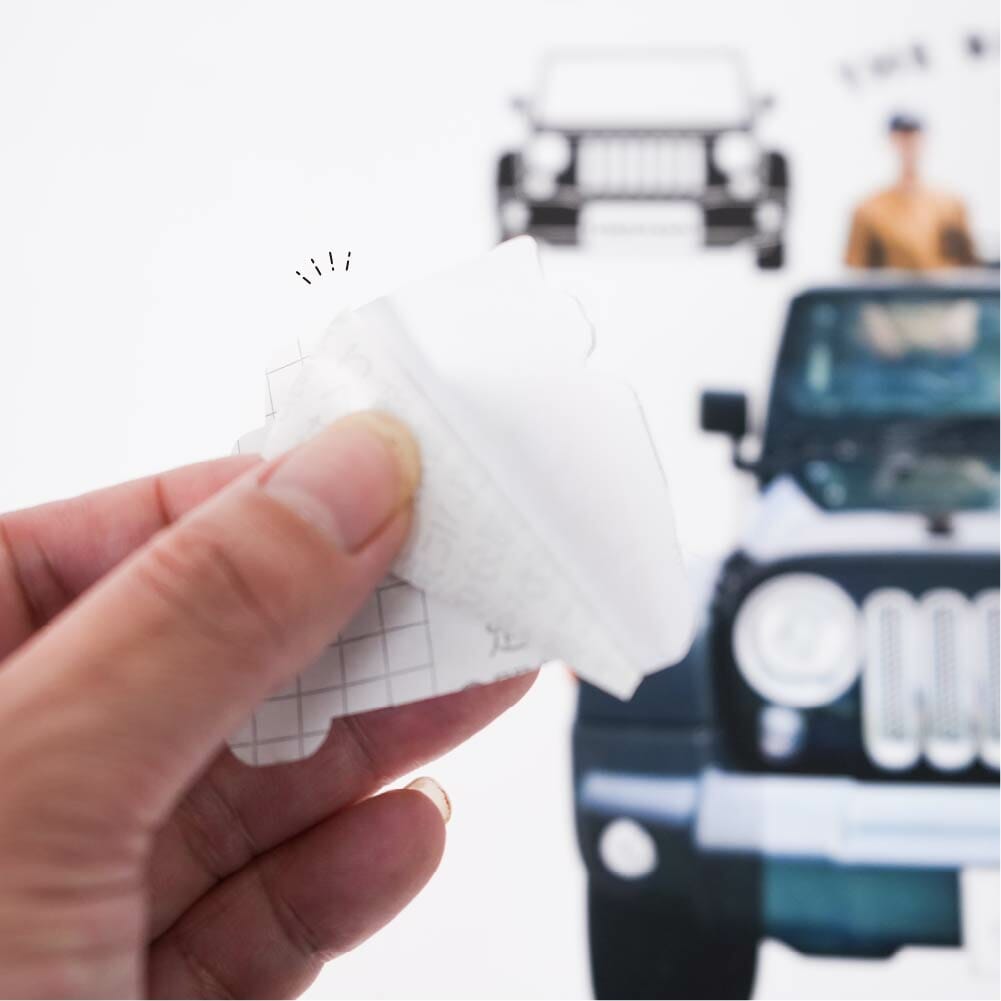 貼りやすいように、シートにはうっすらガイド(薄い色の車)を入れてあるので、その上に貼ればOKです。これならゲストも安心ですよね