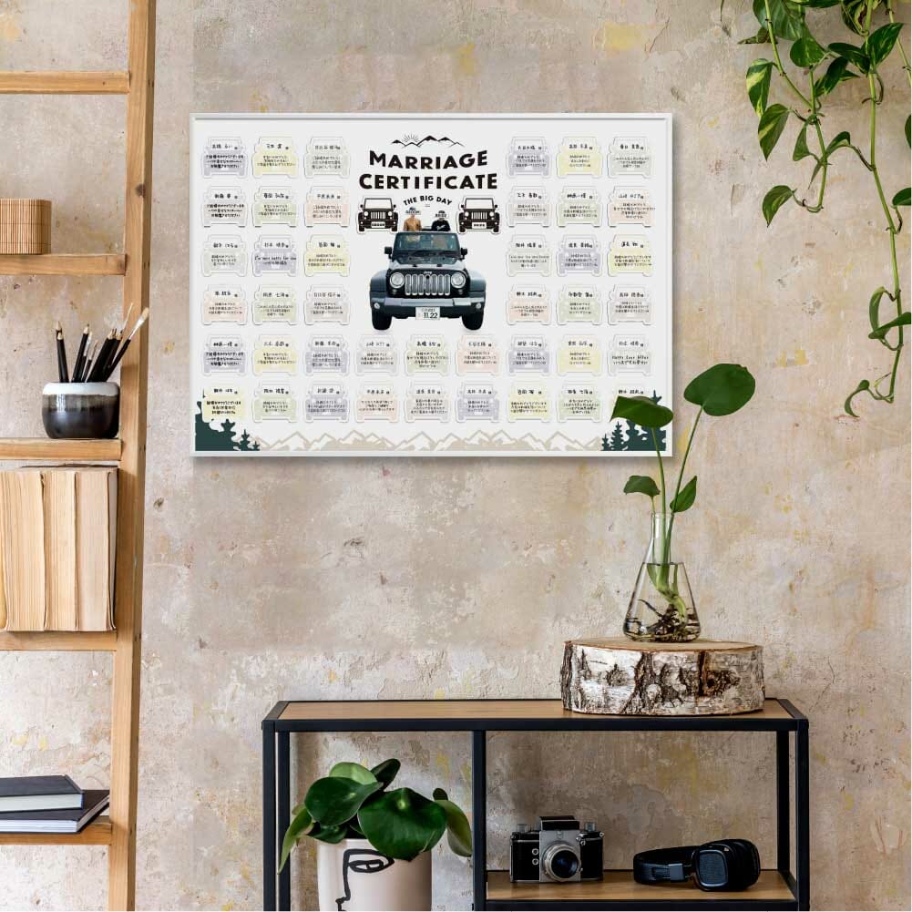 今回は大好きな愛車をモチーフに、フレーム入りのポスターとしてお部屋を彩る「結婚証明書」のご紹介でした!