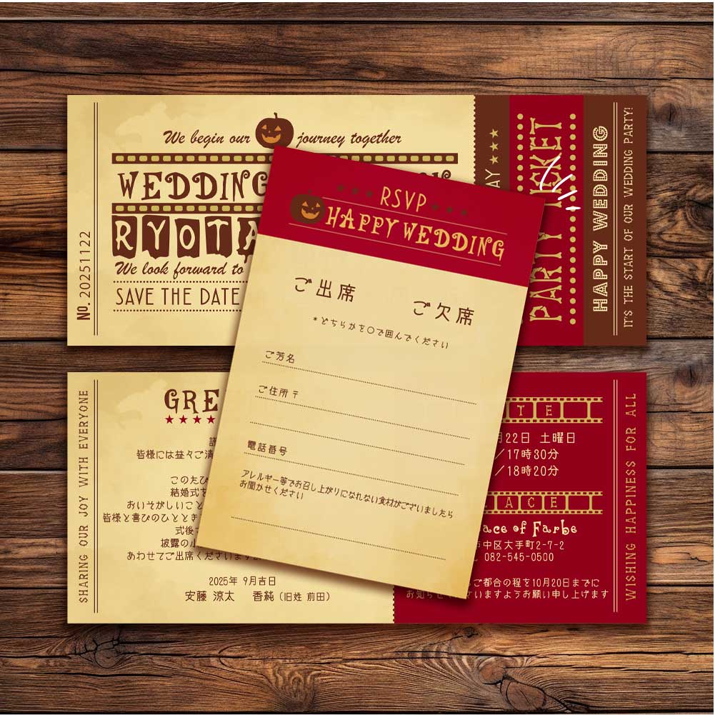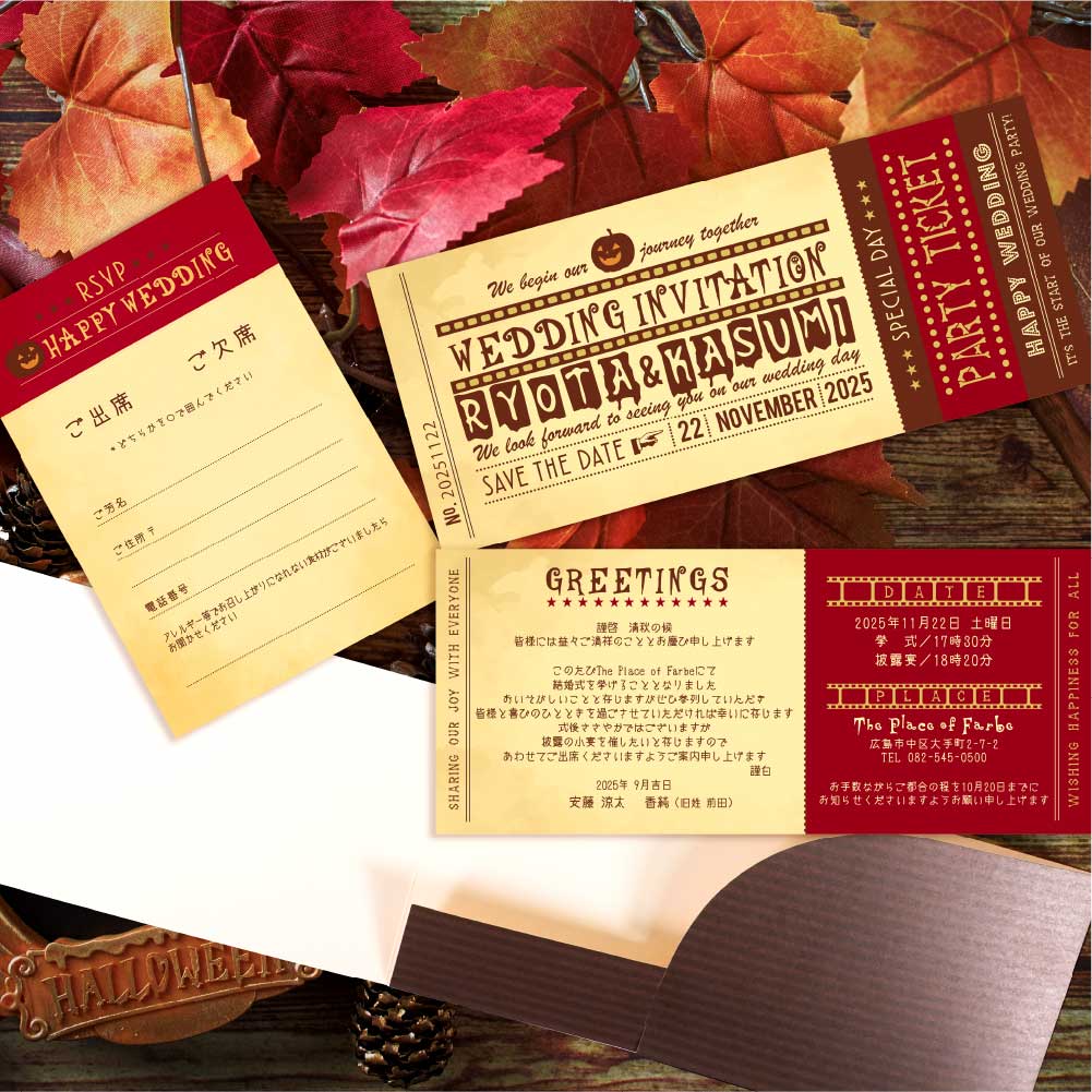 ファルベのシネマチケット招待状をちょいアレするだけでハロウィン風になるコスパ最強アレンジです。