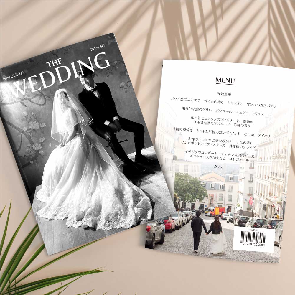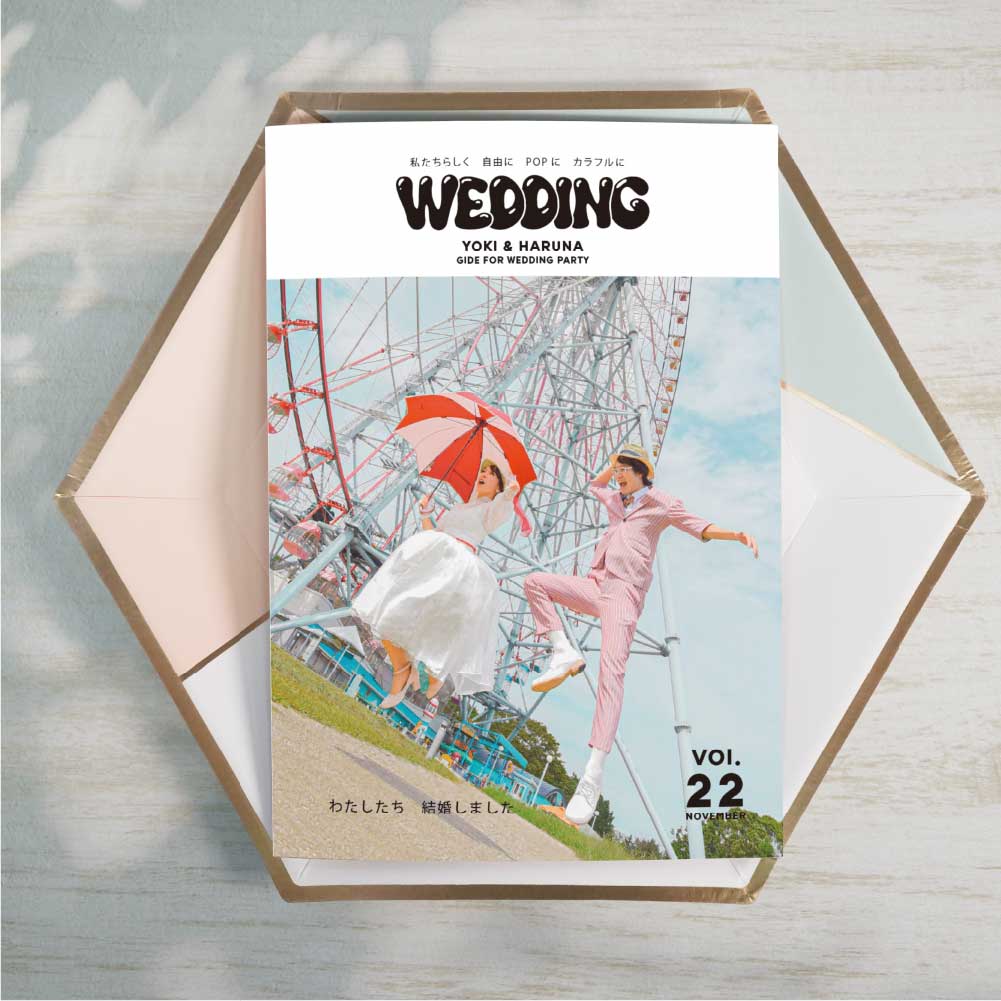 主役のおふたりを主役らしく♪ユーモアたっぷりに紹介できる雑誌風のプロフィールブック