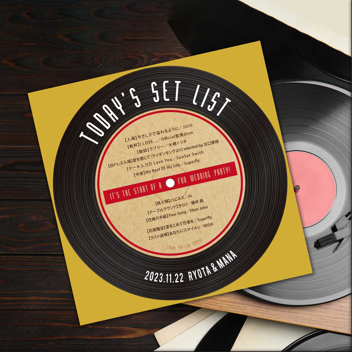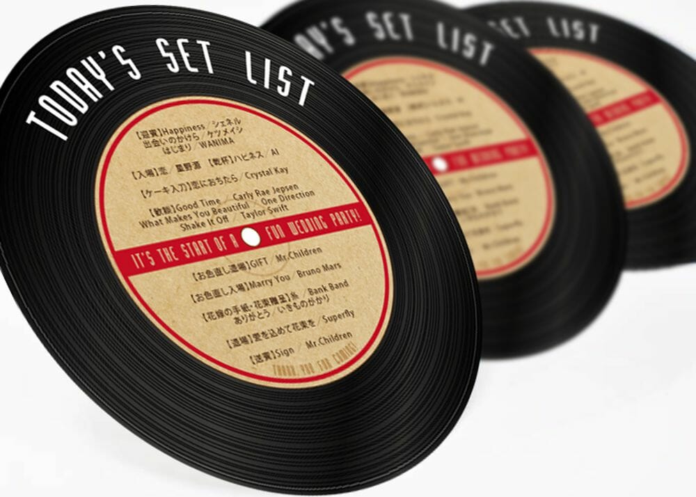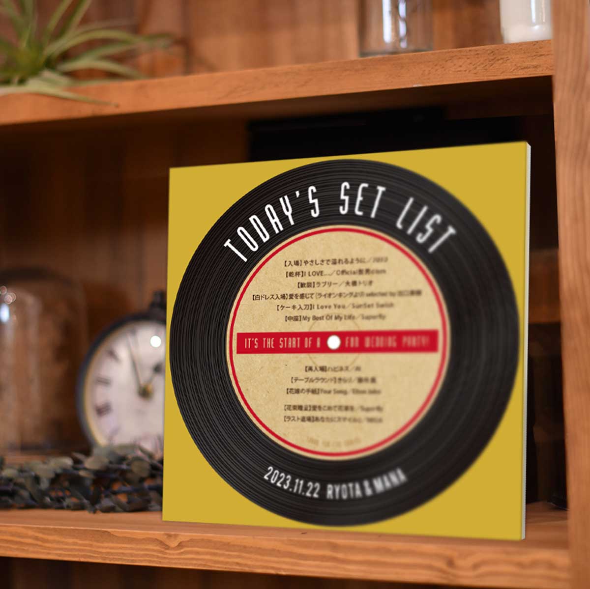 結婚式のウェルカムスペースを飾る!レコードデザインのセットリストボード