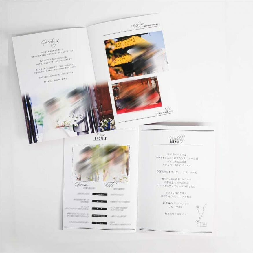 おふたりのプロフィール・メニュー表付きがうれしい♪ -