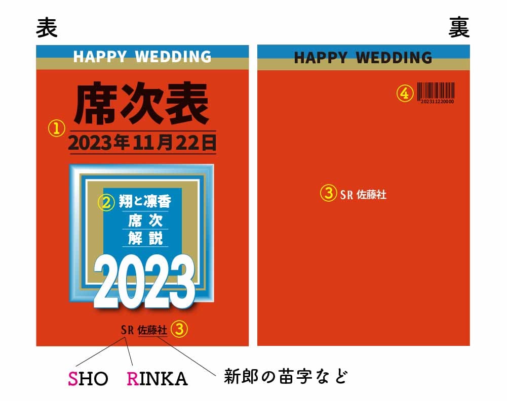 赤本風の結婚式席次表