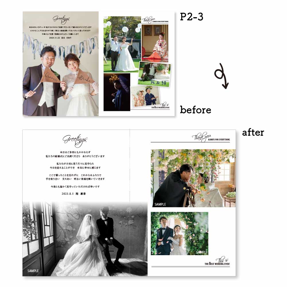 プロフィールの項目も減らして、その分お二人のお写真を大きくしたりもOK!なんでもご相談くださいね!