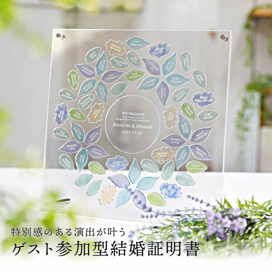 ピースタイプのアクリル結婚証明書です。