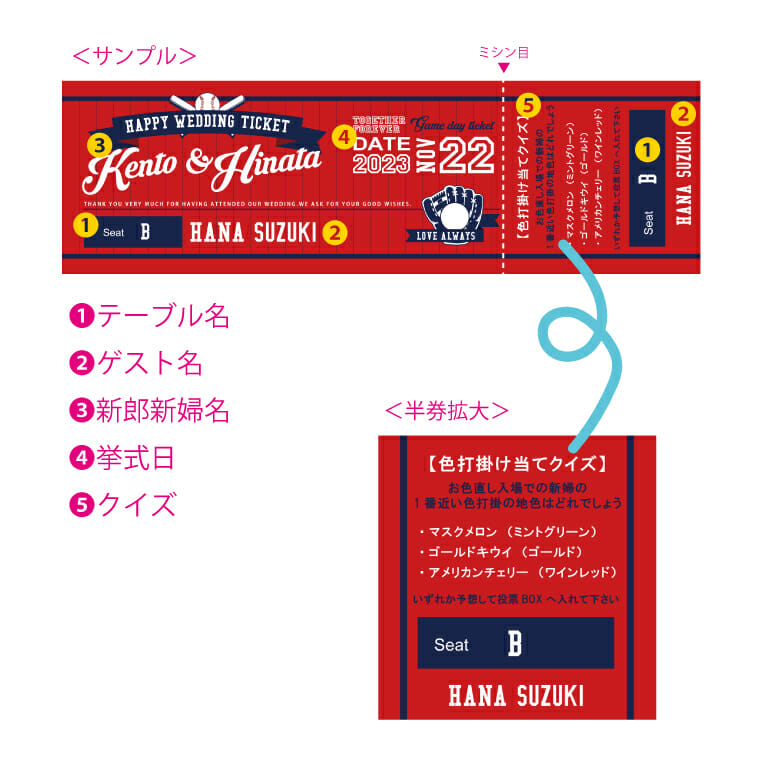 赤い球団カラーで結婚式が盛り上がる!【クイズ付】野球エスコートカード