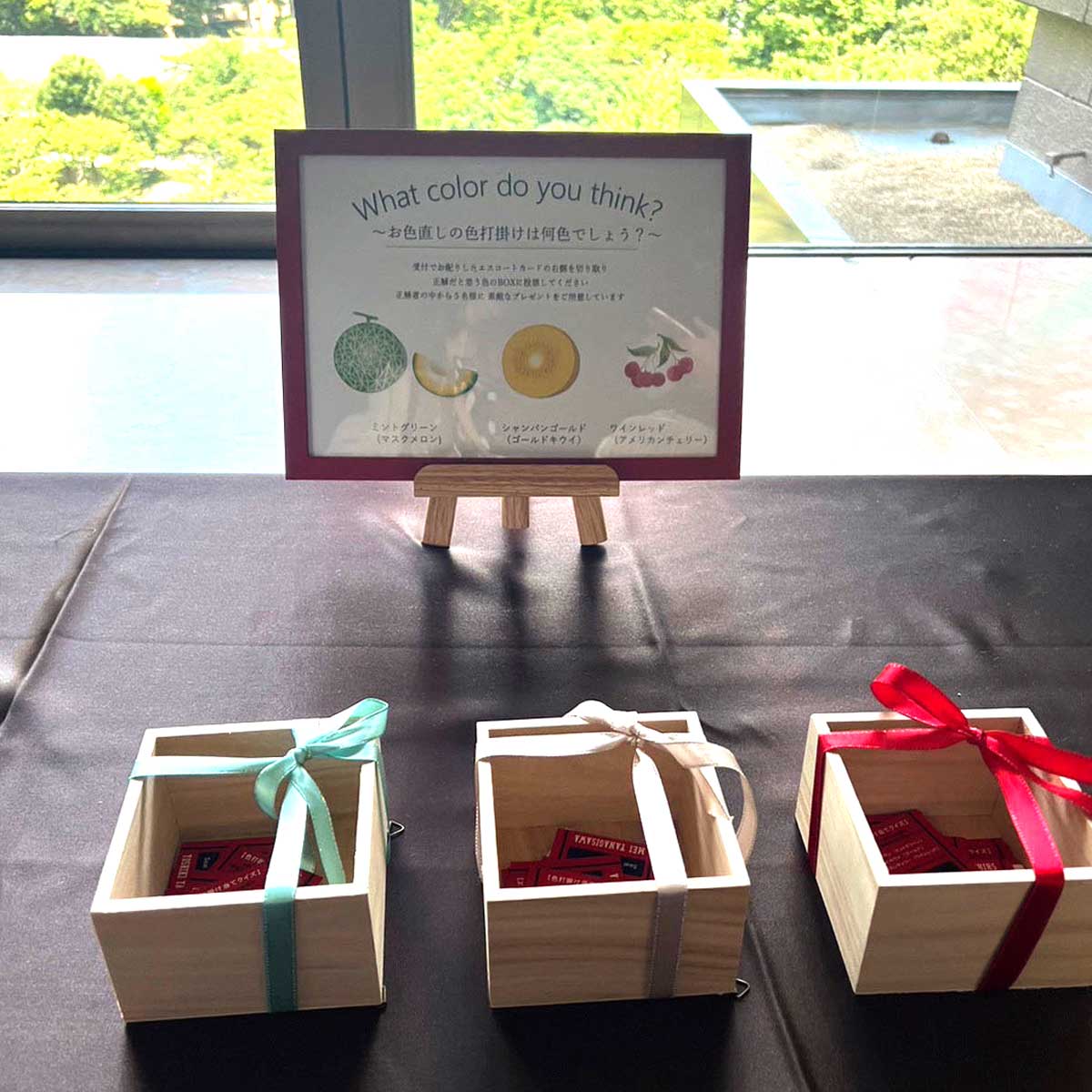 エスコートカードの色打掛けクイズではとても盛り上がり楽しめました。