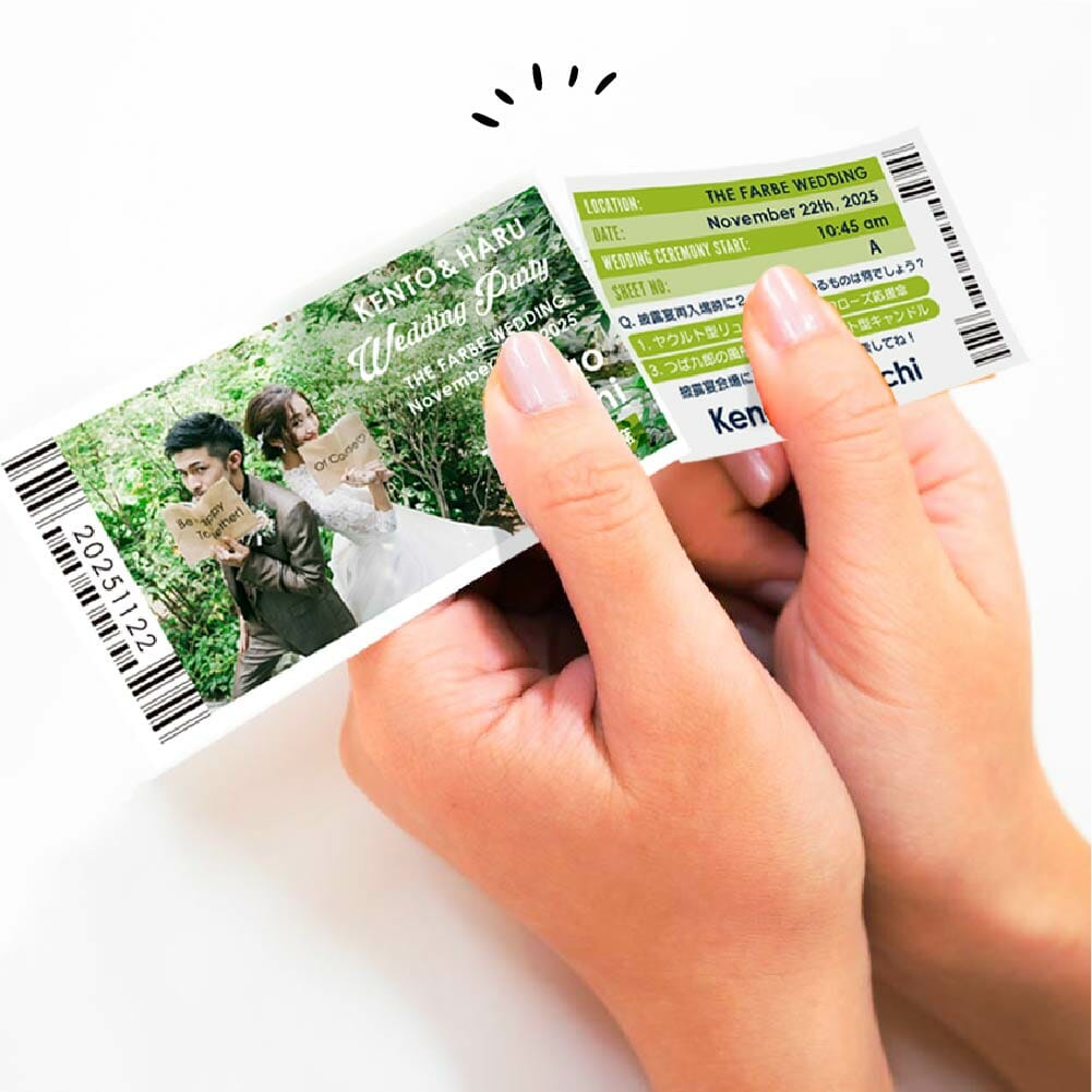 結婚式の演出や受付に飾った時を考え、用途に合わせてミシン目入り・なしは選んでくださいね!