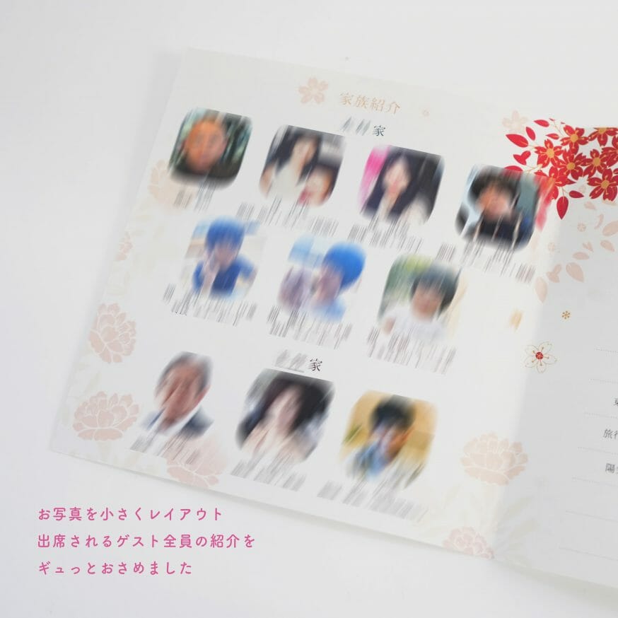 両家紹介は写真を小さめにして、1ページにまとめています -