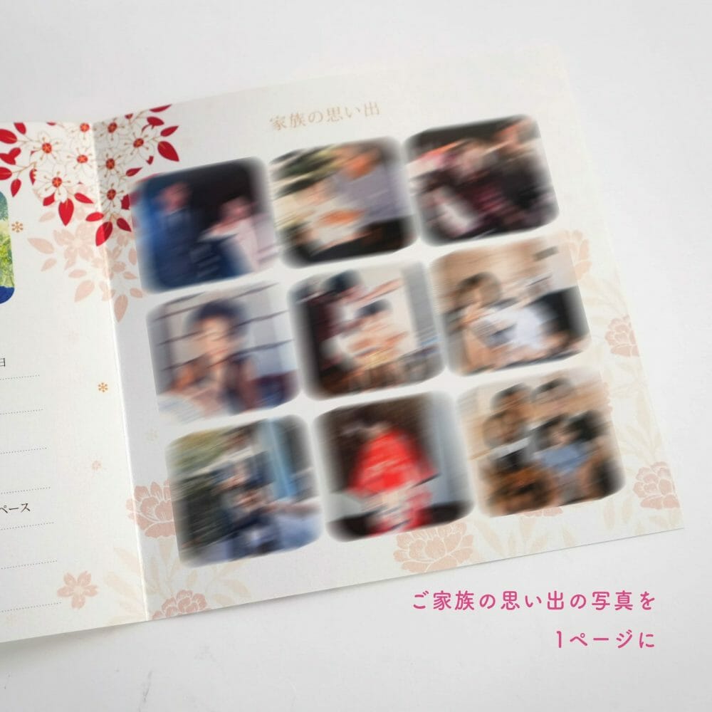 右側には、ご家族の思い出のお写真をたくさんお入れしています。