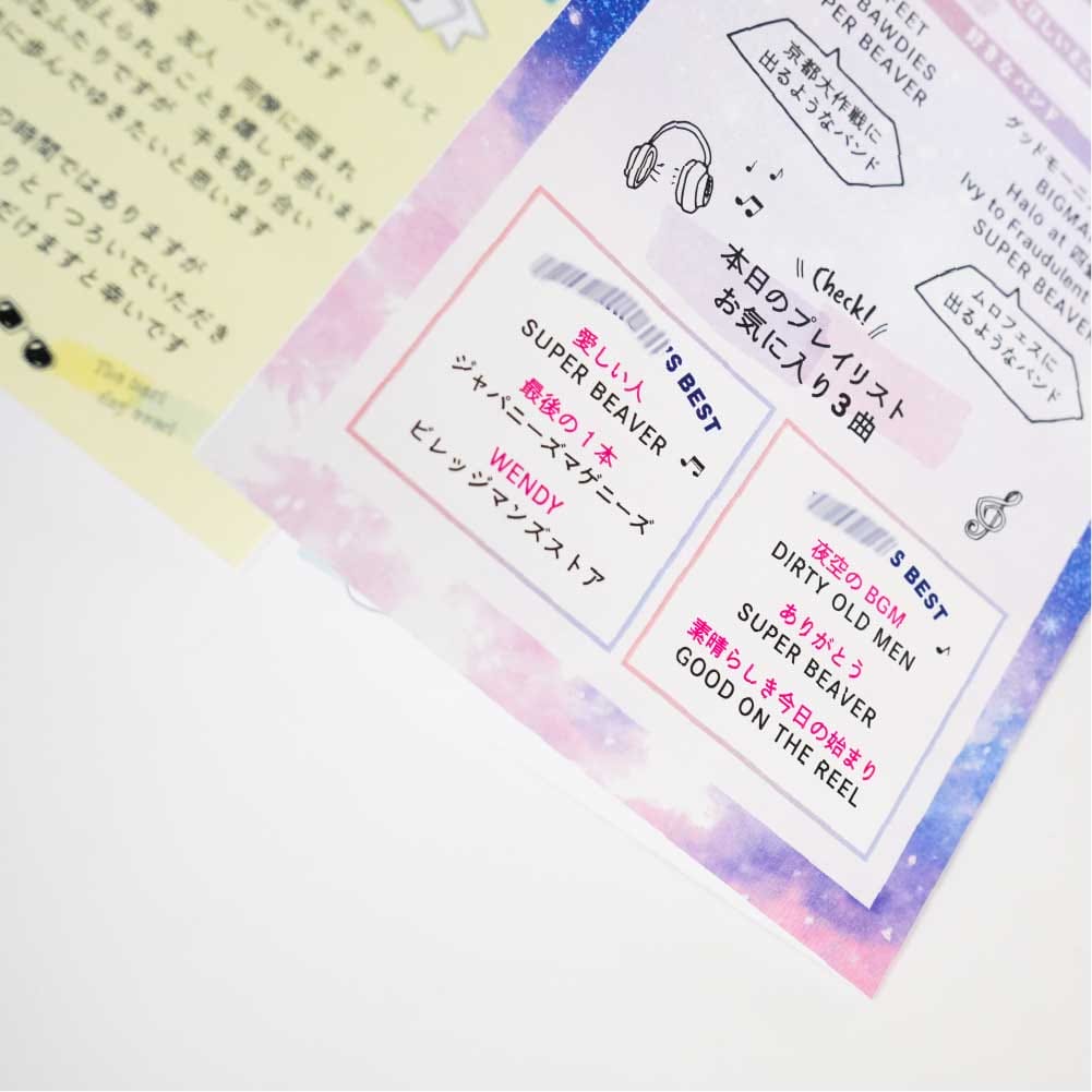 ライブで知り合った友達にはお気に入りの曲の欄を見てどこで使うんだろう〜とワクワクしてもらえたようでした^ ^