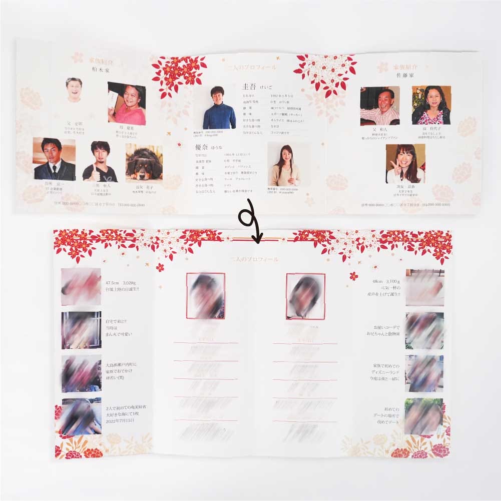 両サイドにおふたりの幼少期からのお写真と中央におふたりのプロフィールという豪華な仕様。
