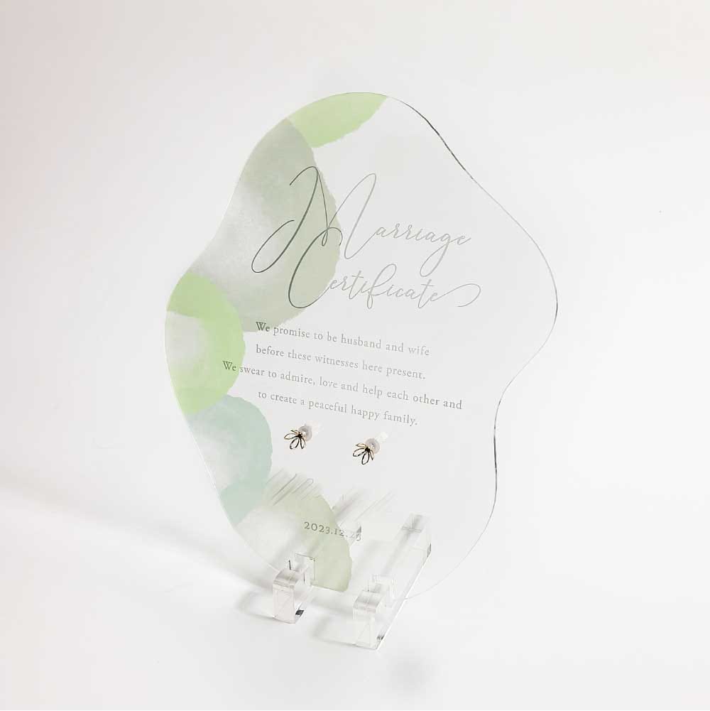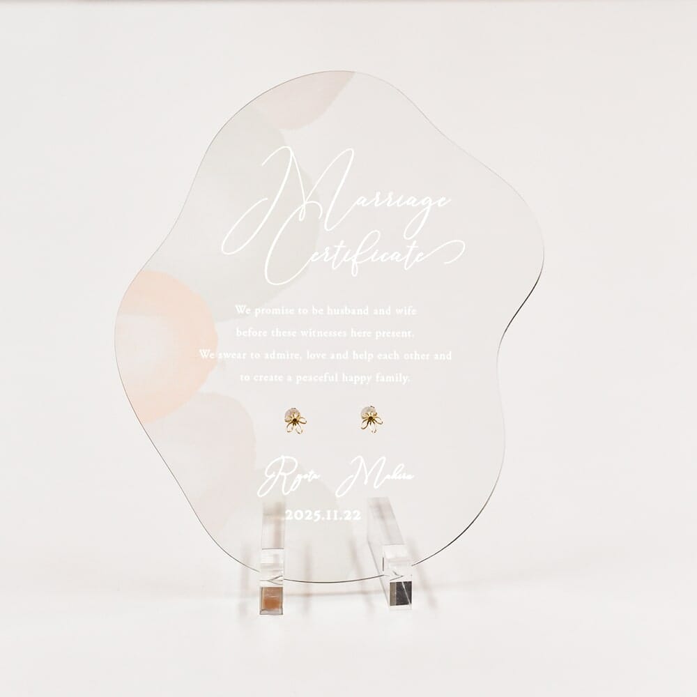 ✓【インテリア性重視】韓国っぽ!アクリルミラーのウェーブ型結婚証明書