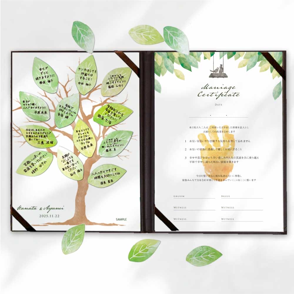 ▶《ウェディングツリー》ゲスト参加型サイン式結婚証明書「ウェディングツリー モスグリーン」