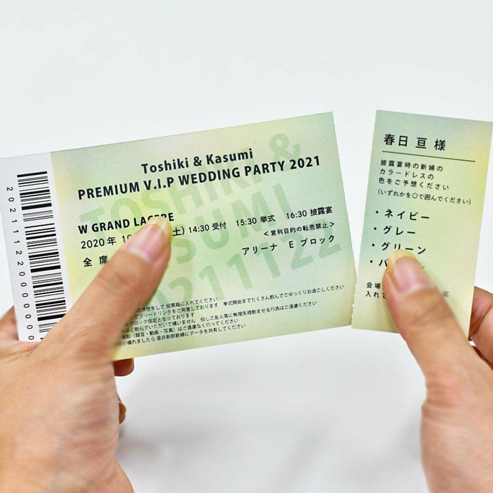 半券は投票箱を用意するだけでくじ引きやクイズなど余興にも使えるスグレモノ♥