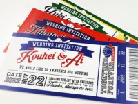 野球・サッカーなど、様々なデザインがありますが、中でも人気なのは、観戦チケット風の招待状。