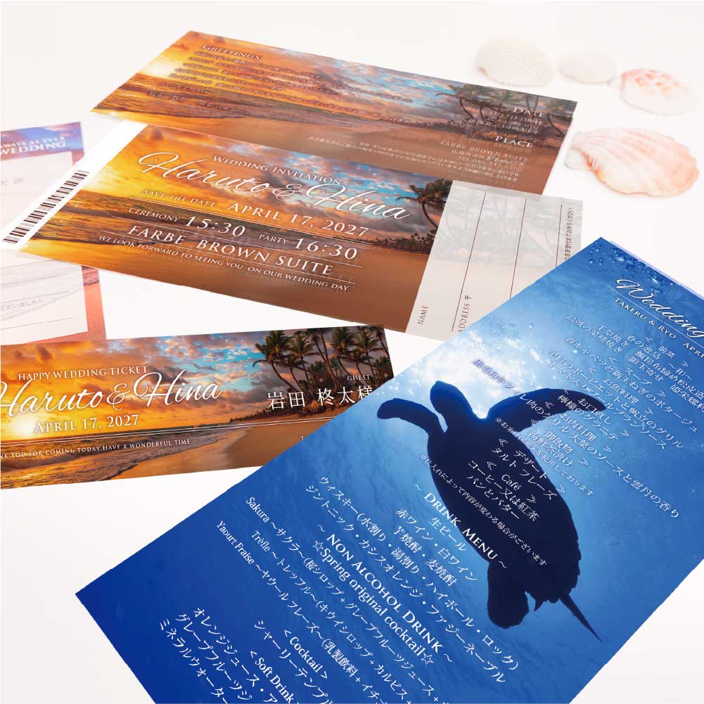 海好き!リゾ婚向け!招待状・エスコート・メニュー表3点セット