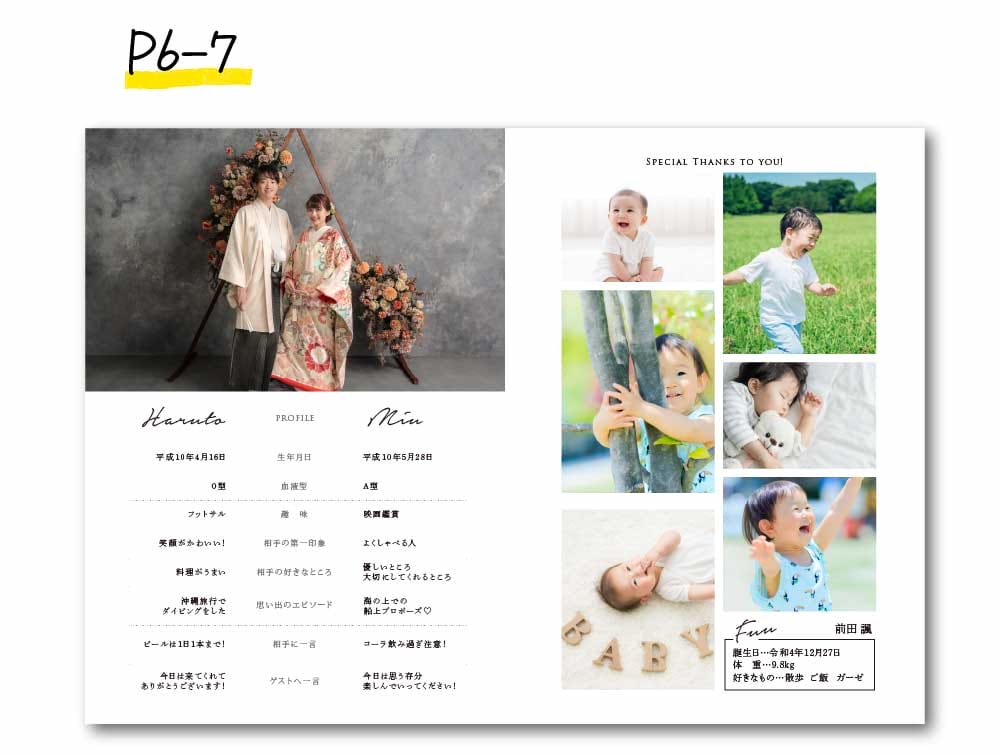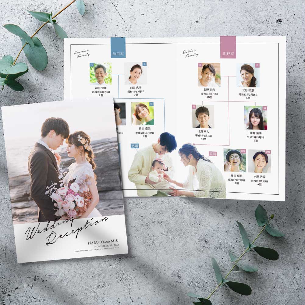 お二人のプロフィール・お子様のプロフィール・ご家族紹介・席次表・メニュー表が1冊にまとまるわけです!