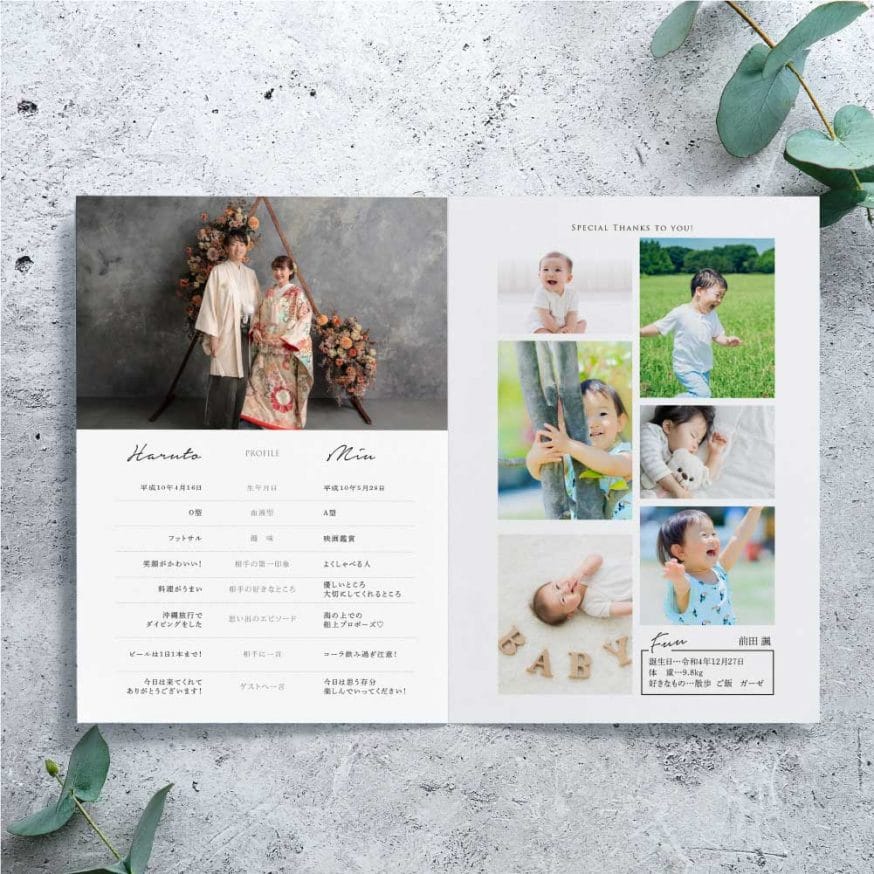 ご家族紹介だけではなく参加いただけるゲストの皆さまへのおもてなしとして、ゲスト紹介付きプロフィールブックもとっても人気です。