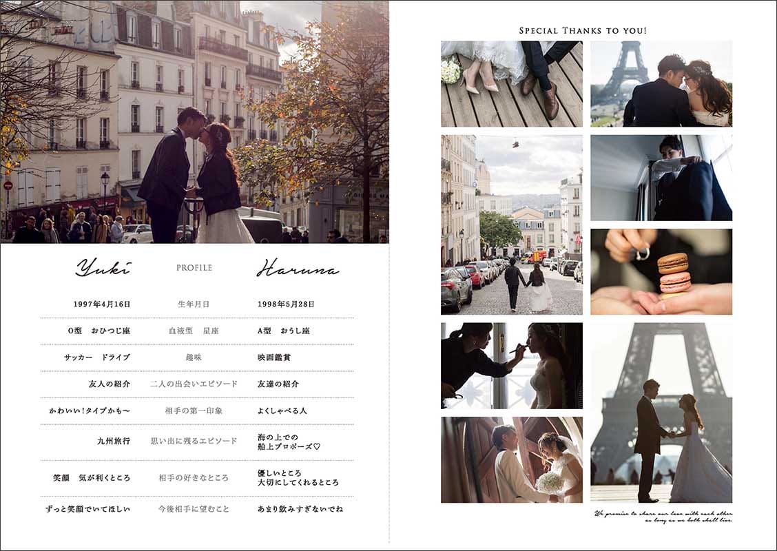 新郎新婦ご家族にとっても、両家ご家族・ご親族の方にとっても記念となるプロフィールブックになりますよね。